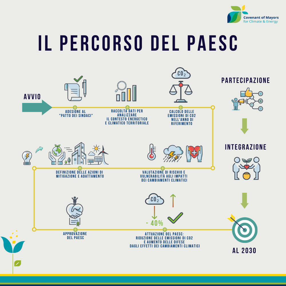Il PAESC – Piano d’Azione per l’Energia Sostenibile e il Clima è un documento programmatico con il quale gli enti locali pianificano le proprie azioni per raggiungere gli obiettivi fissati dal Patto dei Sindaci per il Clima e l’Energia